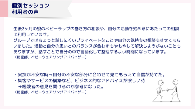 抱っこ紐を使う時の基本姿勢を学ぶことで抱っこ紐の型に赤ちゃんを合わせるのではなく、赤ちゃんの基本姿勢に合わせて、抱っこ紐を調整していく事の必要性から視点を変えて見ていけるようになったと感じました。
