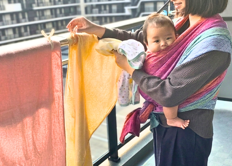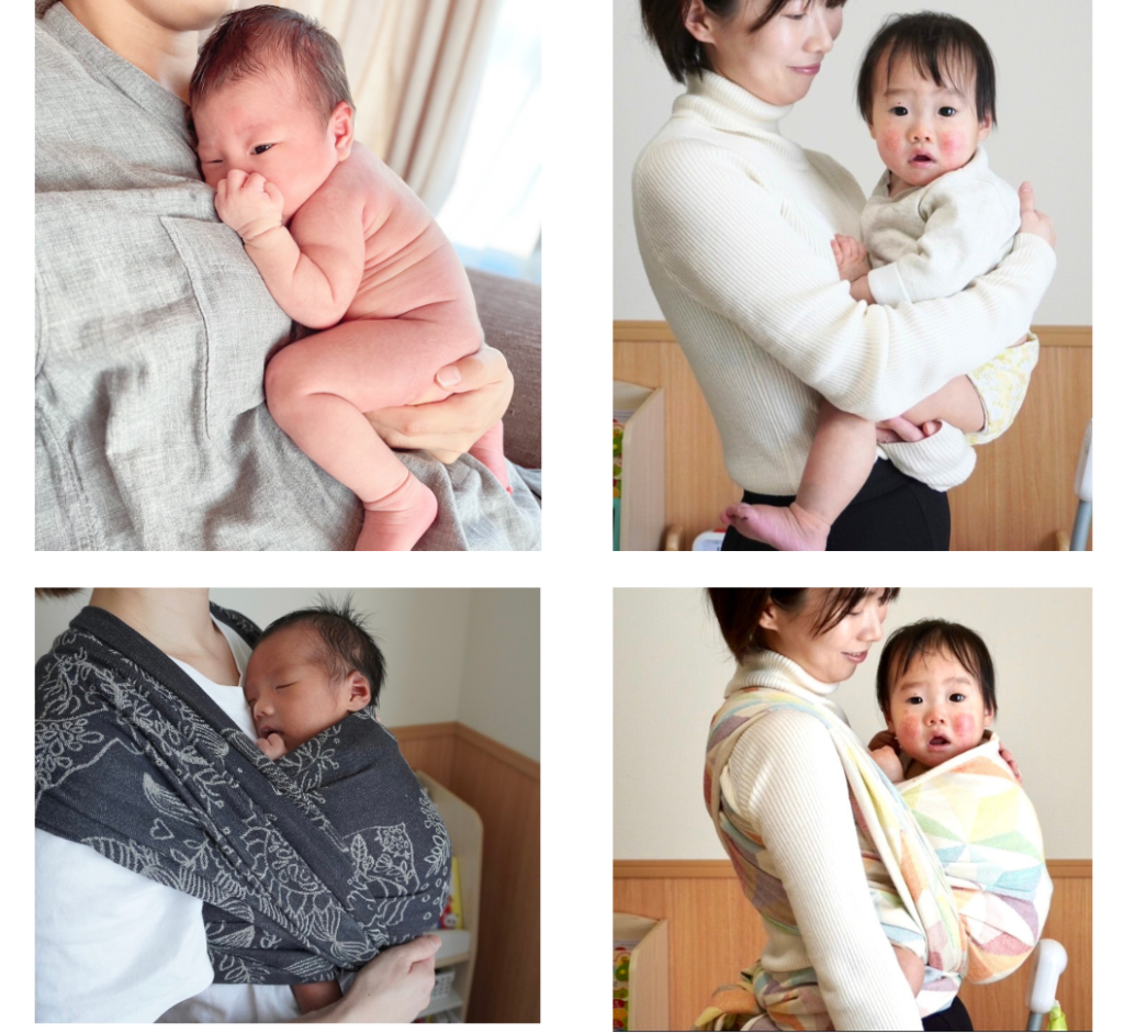 - 一枚布ベビーラップやリングスリングを基礎実技とした